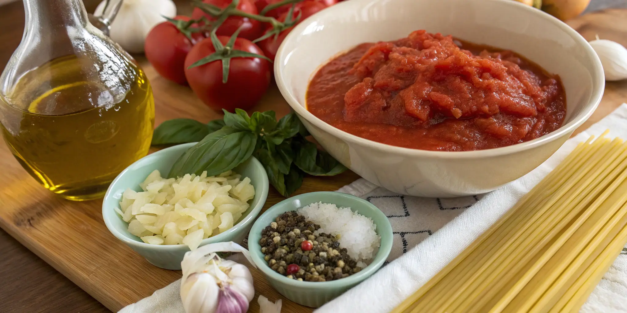 The ingredients in this tomato paste pasta sauce recipe are simple but special. First, it uses ripe tomatoes that burst with flavor. Next, the tomato paste lends a rich, deep taste that makes each bite memorable. Additionally, fragrant herbs such as basil and oregano bring freshness to the sauce.